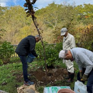 朝里川遊歩道のアジサイは10月12日から枝払い剪定と冬囲いを数回に分けて行ってきました。今日の作業で9割ほどを終えます。来週の土曜日には百想園のアジサイ剪定と冬囲いを行います。初雪の予報も出始めました。季節と競うように冬支度を進めています。