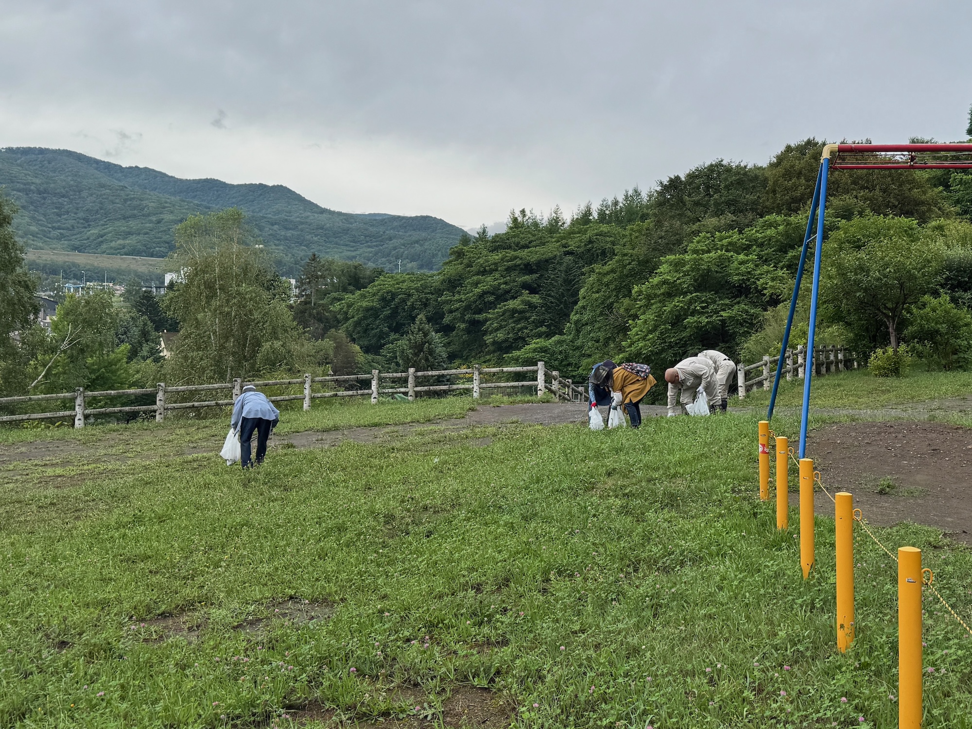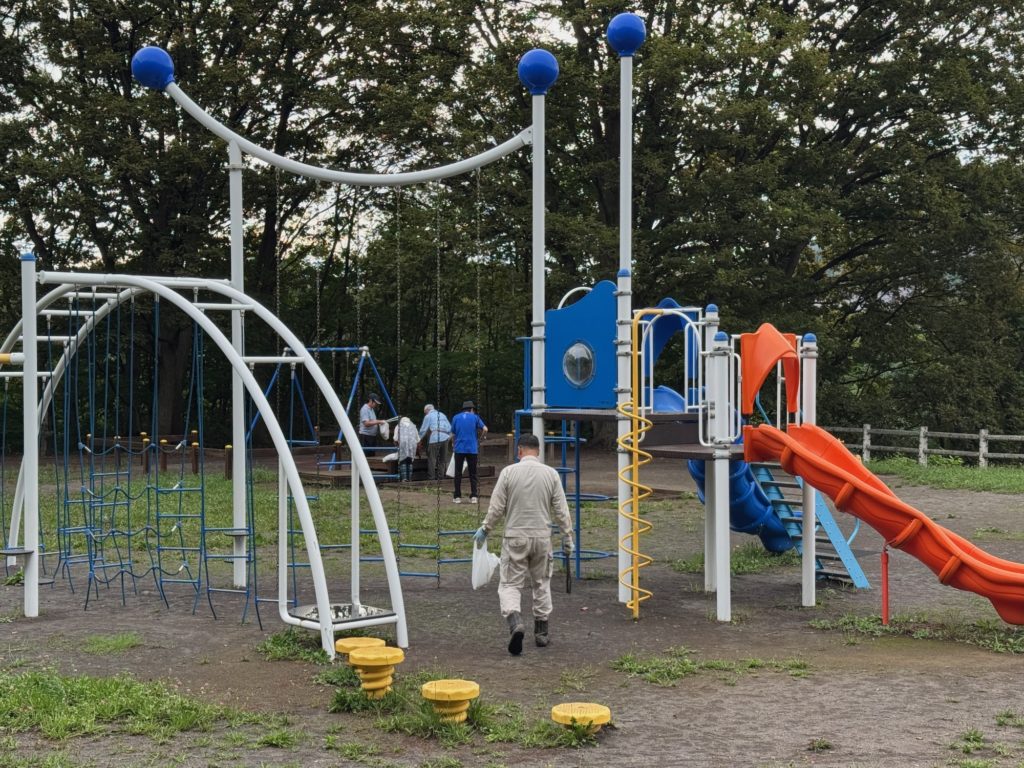 翌7日(木)午前7時から朝里川公園の清掃。平日の朝早くにも拘わらず近隣住民の方や、社員4名でご参加くださった五洋建設さんなど、まちづくりの会員といっしょに花火の殻拾いを約30分行いました。朝里川公園のグランド内にもゴミは殆ど落ちていなくて、タバコの吸殻とライターひとつ、プラスチックの雨傘2本だけを回収しました。ゴミは持ち帰りのマナーがとても徹底されていて、毎回ご協力に感謝しております。