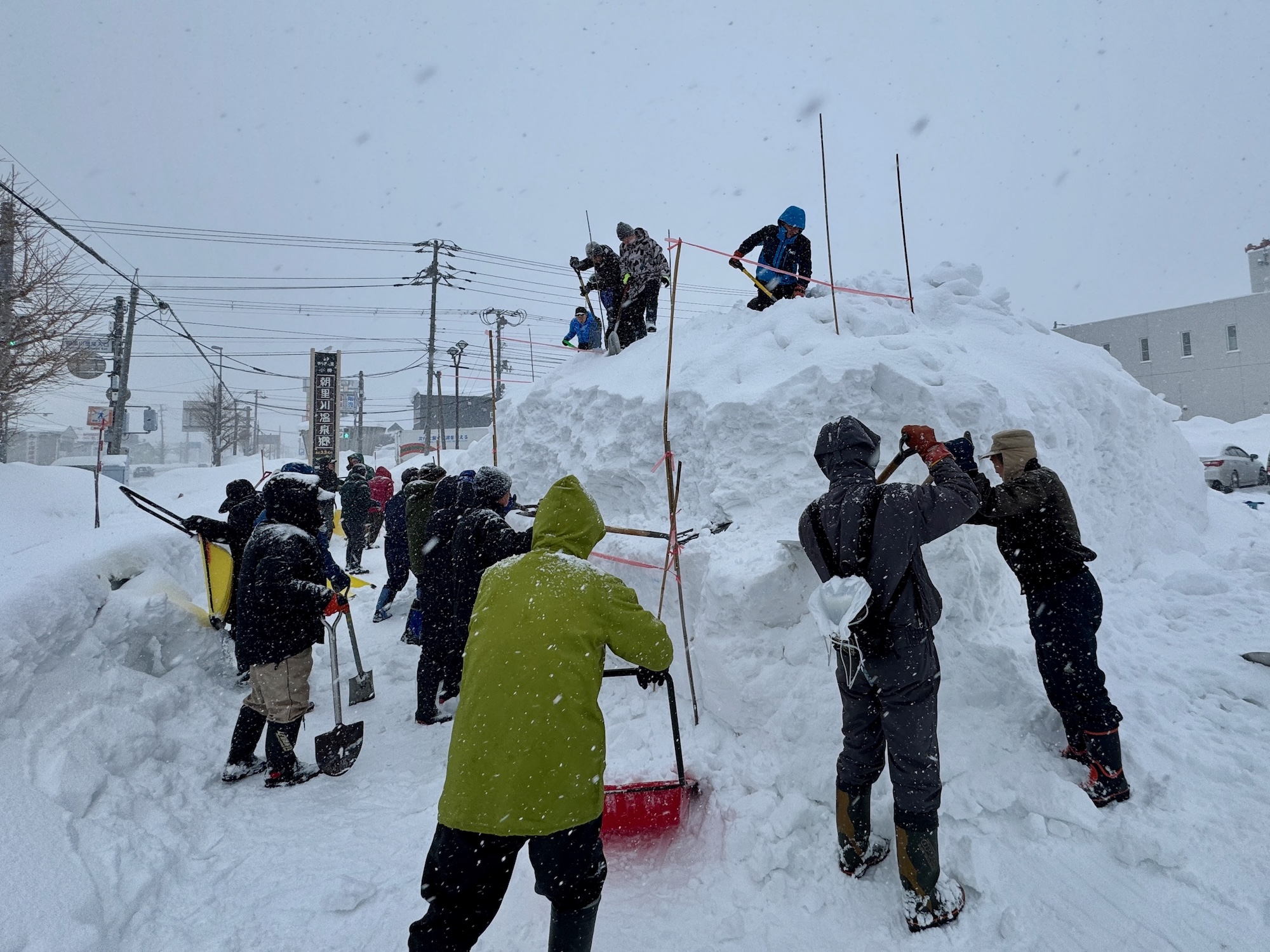地域の町会・団体で組織する朝里十字街雪まつり実行委員会(前川仁代表)による雪のオブジェ作りが2026年1月31日(土)午前9時から始まりました。