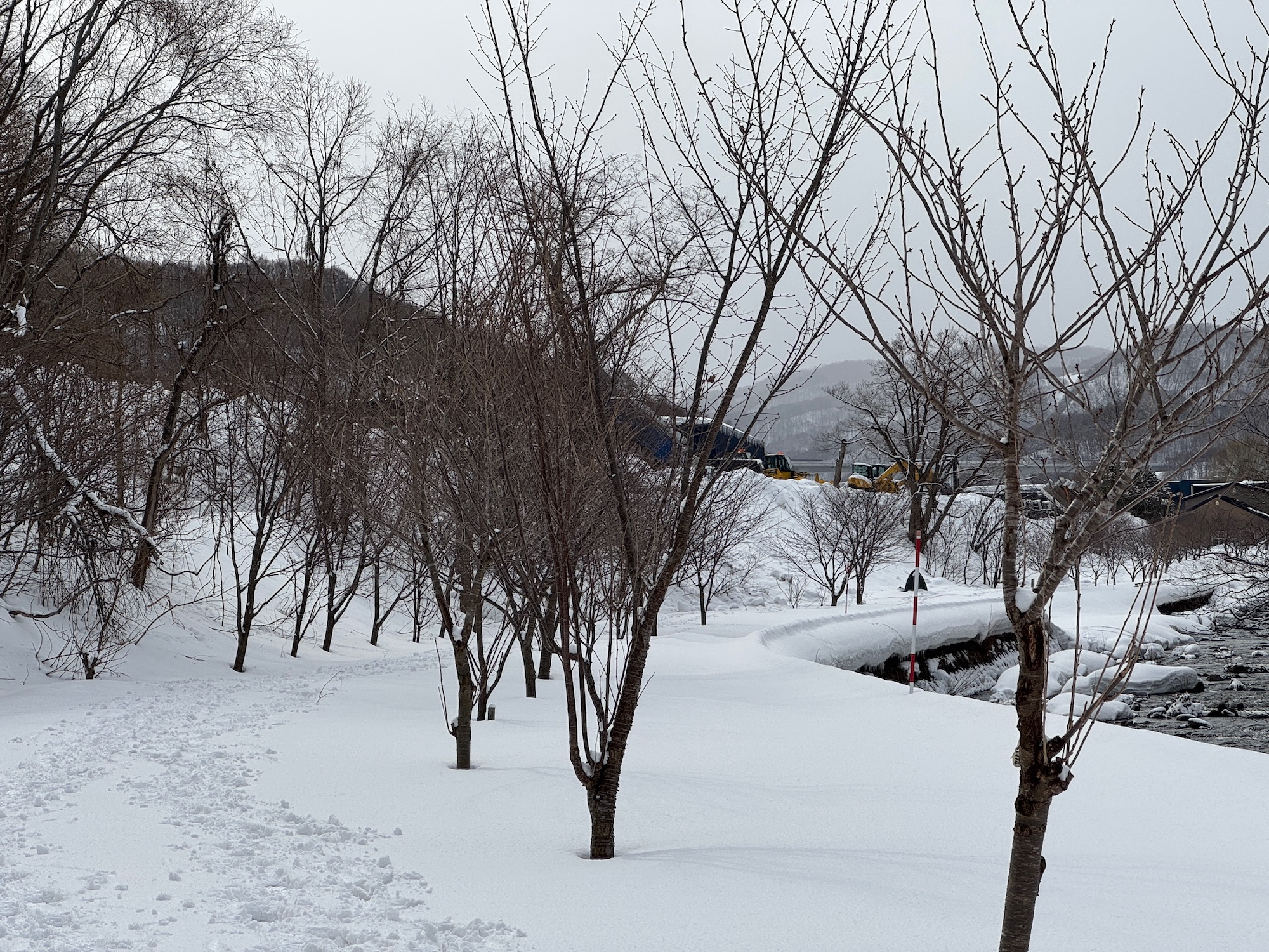 この作業前にこの河川敷を管理する北海道小樽建設管理部にご挨拶に行ってきたのですが、そこで「昨年崖上の会社に雪害について伝えたところ、ご理解を頂けましたよ」とお話くださったので、それが早速実践されているのを見てとても嬉しかったです。小樽建設管理部様、駐車場をお持ちの会社様、排雪へのご配慮、ご理解を本当にありがとうございました。