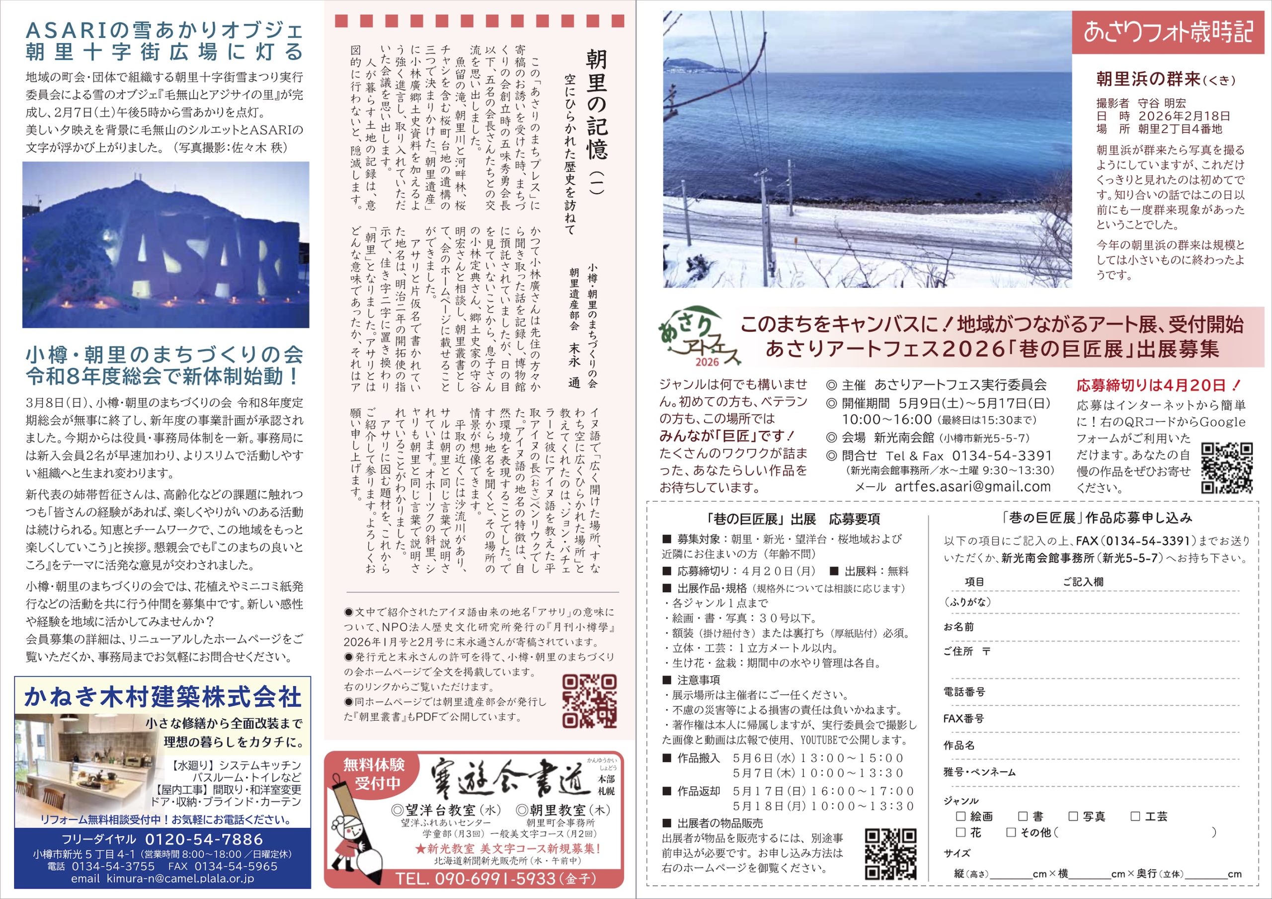 まずは準備号を、地域の新聞販売店(読売センター朝里さん、北海道新聞新光販売所さん、北海道新聞中販売所さん)の協力をいただいて4月1日に配布いたします。