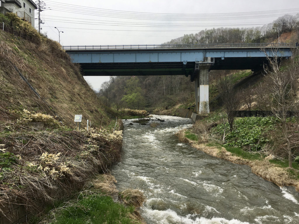 朝里川河口の上には線路と国道が架かっていますが、その線路脇に太平山碑が祀られた祠があります。今日はそこも見学させていただきました。