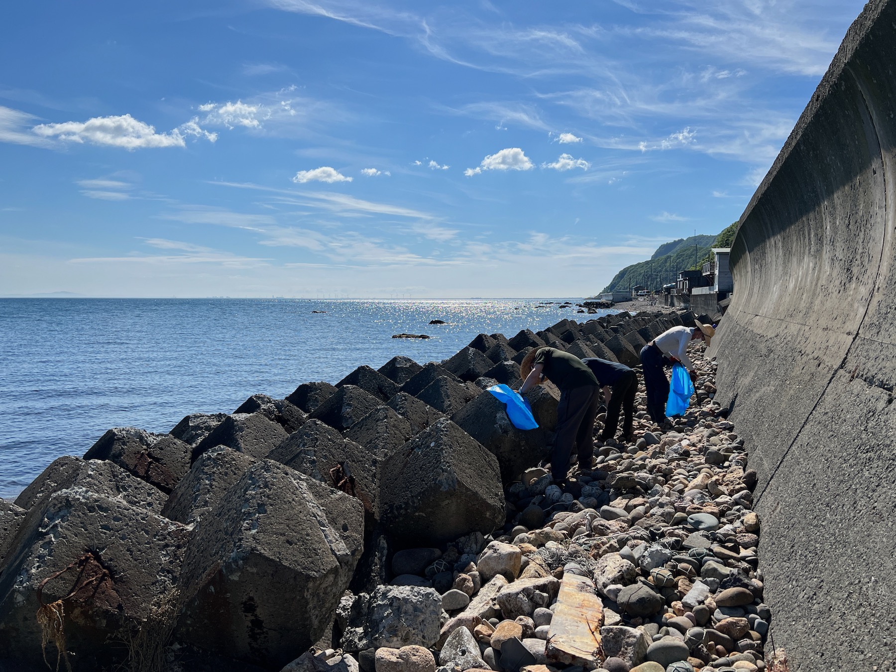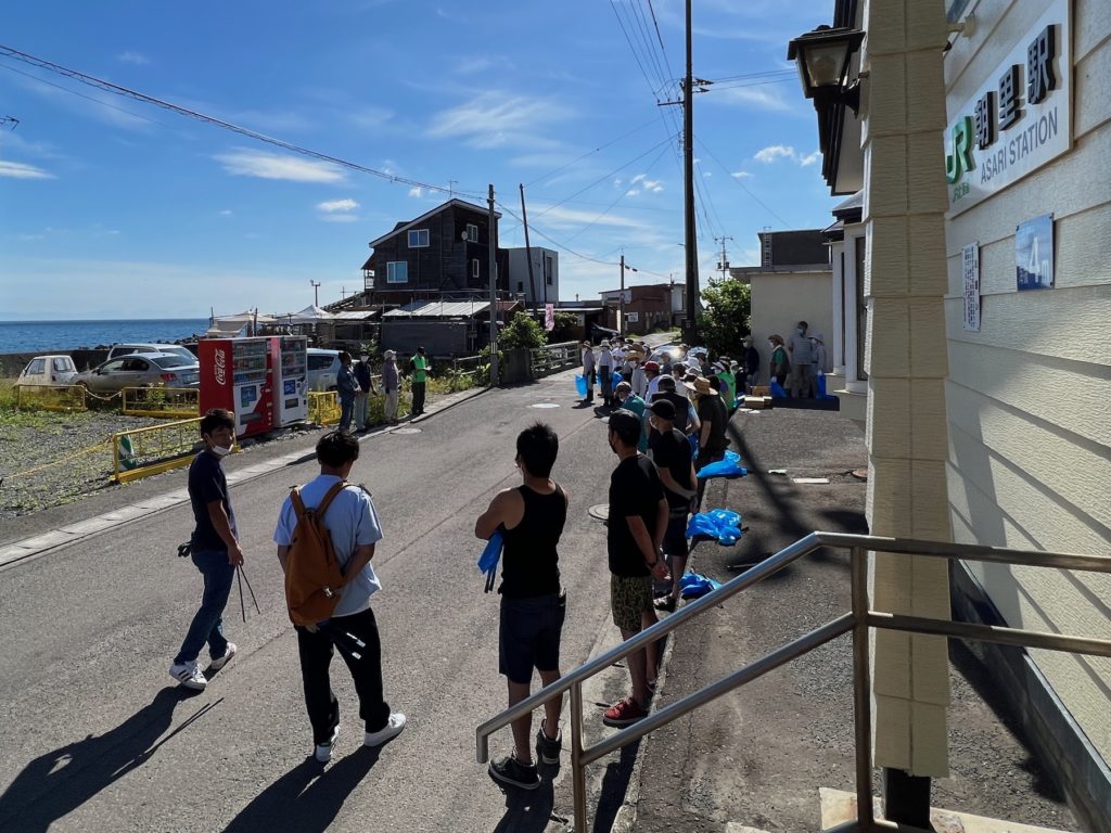 2022年7月3日(日)午前8時より、朝里町会、小樽板金協会青年部、小樽・朝里のまちづくりの会の合同で朝里海水浴場周辺のクリーン活動を行いました。参加者は約30名。集合場所の朝里駅から線路沿いの道路と海岸線を札幌方向に約500メートルの間でゴミを拾い歩きました。